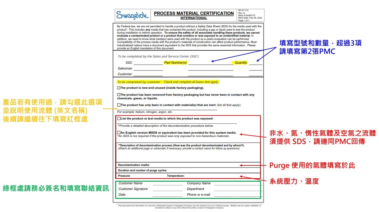 所有Swagelok產品皆享有LLW(Limited Lifetime Warranty)終身保固服務。如需退換貨,請詳讀下方資訊並提交表單。